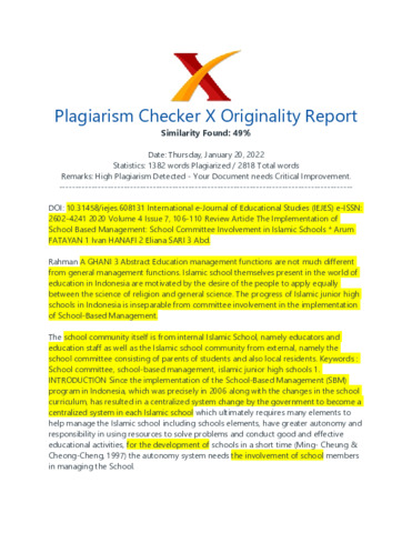 arum, fatayan hasil turnitin dan reveiwer. International e-Journal of Educational Studies.