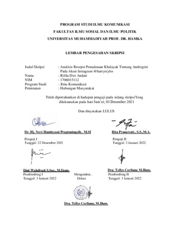 Wahdiyati, Dini Dokumentasi Pembimbing Utama Skripsi semester gasal 2021-2022_Dini Wahdiyati, M.I.Kom. universitas muhammadiyah prof. dr hamka. (Unpublished)