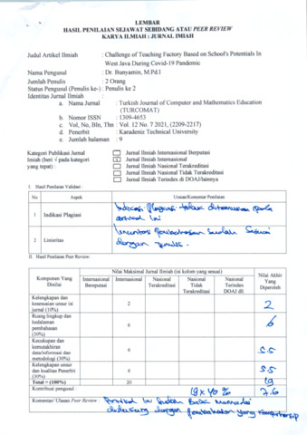 Bunyamin, Bunyamin Peer Review Challenge of Teaching Factory Based on School's Potentials In West Java Düring Covid-19 Pandemie. Turkish Journal of computer and Mathematics Education (TURCOMAT).