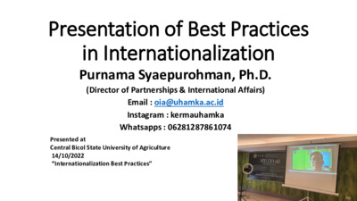 Syae Purrohman, Purnama (2022) Best Practices of Internationalization of Higher Education. In: Conference on Internationalization.