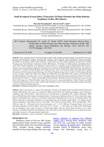 Maryanti, Setyaningsih Studi Kerapatan Kerang Kima (Tridacnidae) Di Pulau Pramuka dan Pulau Belanda, Kepulauan Seribu, DKI Jakarta. Quagga.