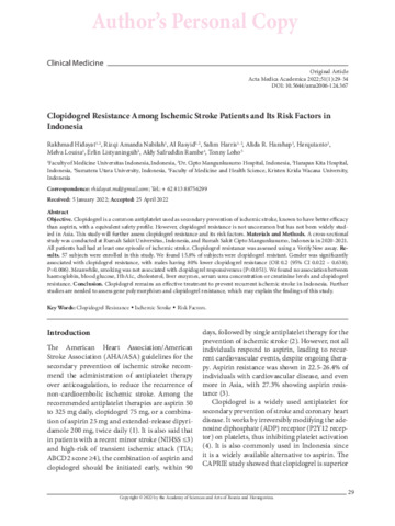 15. 2022 - Clopidogrel Resistance Among Ischemic Stroke Patients and Its Risk Factors in Indonesia.pdf Download (126kB) | Preview |