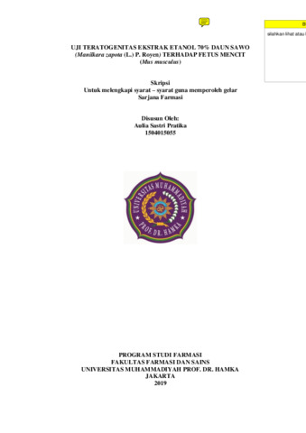 Pratika, Aulia Sastri dan Efendi, Kriana dan Dewanti, Ema (2019) UJI TERATOGENITAS EKSTRAK ETANOL 70% DAUN SAWO (Manilkara zapota (L.) P. Royen) TERHADAP FETUS MENCIT (Mus musculus). Bachelor thesis, Universitas Muhammadiyah Prof. DR. HAMKA.