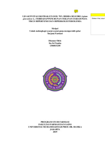 Yunita, Ita Sri dan Siska, Siska dan Sediarso, Sediarso (2019) UJI AKTIVITAS EKSTRAK ETANOL 70% HERBA SELEDRI (Apium graveolens L.) TERHADAP PENURUNAN TEKANAN DARAH PADA TIKUS HIPERTENSI DAN HIPERKOLESTEROLEMIA. Bachelor thesis, Universitas Muhammadiyah Prof. DR. HAMKA.