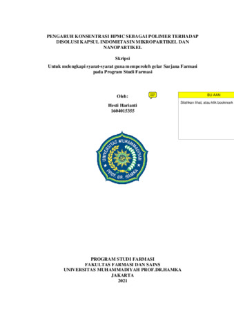 Harianti, Hesti dan Gusmayadi, Inding dan Sjahid, Landyyun Rahmawan (2021) PENGARUH KONSENTRASI HPMC SEBAGAI POLIMER TERHADAP DISOLUSI KAPSUL INDOMETASIN MIKROPARTIKEL DAN NANOPARTIKEL. Bachelor thesis, Universitas Muhammadiyah Prof. DR. HAMKA.