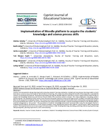 IRDALISA, IRDALISA Implementation of Moodle platform to acquire the students’ knowledge and science process skills. Cypriot Journal of Educational Sciences.