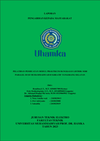 AKHMAD, AKHMAD Laporan Akhir Pelatihan Pembuatan Modul Praktikum Rangkaian Listrik Paralel Di SD MUHAMMADIYAH 03 Kreatif Tangerang Selatan. Universitas Muhammadiyah Prof. DR. HAMKA.