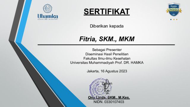 E-Sertifikat Presenter Fitria, SKM., MKM.pdf Download (307kB) | Preview |