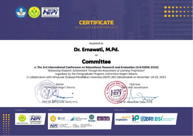 Ernawati, Ernawati sertifikat ICERE-3. universitas UHAMKA.