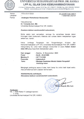 Amir, Yulmaida (2023) Menjaga Kesehatan Mental dalam Perspektif Islam. Universitas Muhammadiyah Prof. Dr. HAMKA. (Unpublished)