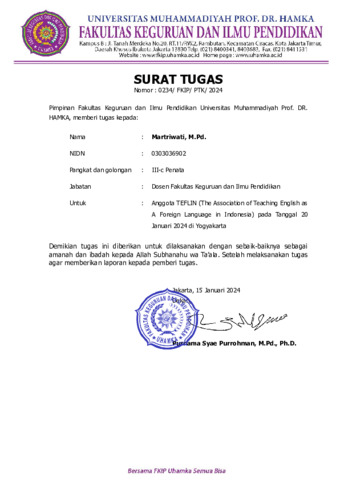 Martriwati, Martriwati SK dan Kartu Anggota TEFLIN. UHAMKA.