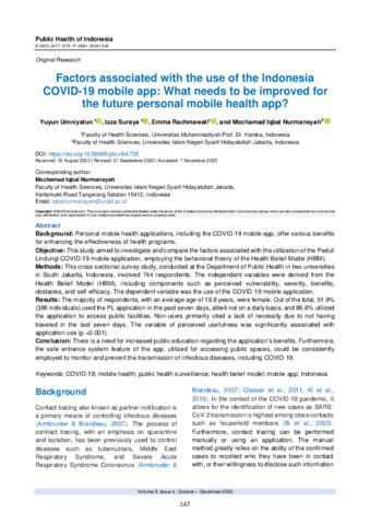 2023 - Factors Assosiated The Use Of The Indonesia Covid19 Mobile App.pdf Download (224kB) | Preview |