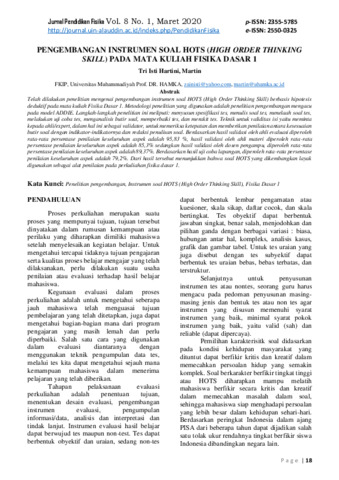 Tri Isti Hartini, TIH Artikel 12_2020 Isti PENGEMBANGAN INSTRUMEN SOAL HOTS (HIGH ORDER THINKING SKILL) PADA MATA KULIAH FISIKA DASAR 1. Uhamka. (Unpublished)