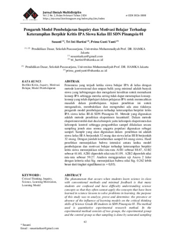 Tri Isti Hartini, TIH Artikel 27_2024 Isti Pengaruh Model Pembelajaran Inquiry dan Motivasi Belajar Terhadap Keterampilan Berpikir Kritis IPA Siswa Kelas III SDN Pinangsia 01. Uhamka. (Unpublished)