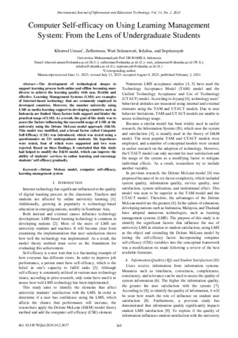 IRDALISA, IRDALISA Computer Self-efficacy on Using Learning Management System: From the Lens of Undergraduate Students. International Journal of Information and Education Technology.