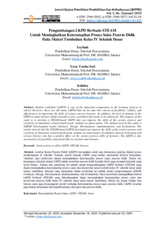 IRDALISA, IRDALISA Pengembangan LKPD Berbasis STEAM Untuk Meningkatkan Keterampilan Proses Sains Peserta Didik Pada Materi Tumbuhan Kelas IV Sekolah Dasar. Jurnal Kajian Penelitian Pendidikan dan Kebudayaan (JKPPK).