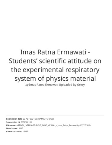 45-HSL TURNITIN_Imas-misbah - Students’ scientific attitude on the experimental respiratory system of physics material.pdf Download (1MB) | Preview |