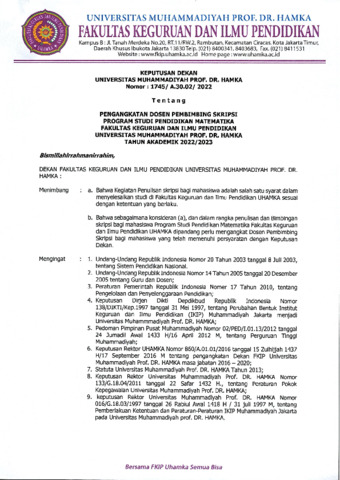 Makmur, Isnaini Handayani SK Pembimbing Skripsi 2022-2023. UHAMKA. (Unpublished)