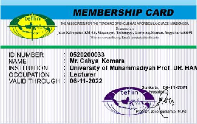 Komara, Cahya Kartu Anggota TEFLIN. TEFLIN.