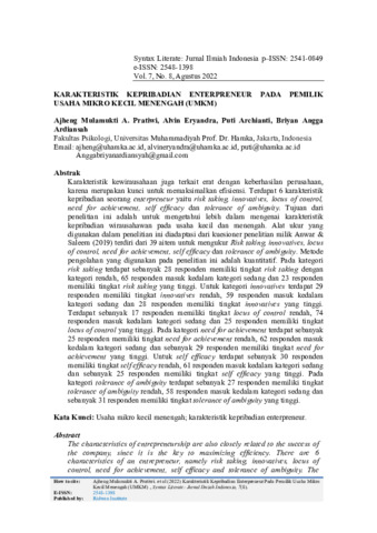 Pratiwi, Ajheng Mulamukti Asih dan Eryandra, Alvin dan Archianti, Puti dan Ardiansah, Briyan Angga (2022) Karakteristik Kepribadian Enterpreneur Pada Pemilik Usaha Mikro Kecil Menengah (UMKM). Syntax Literate; Jurnal Ilmiah Indonesia, 7 (8). pp. 11030-11043. ISSN 2541-0849