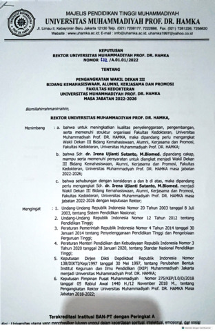ujianti, Irena SK Wakil dekan 3 FK UHAMKA. Universitas Muhammadiyah Prof.Dr.HAMKA.