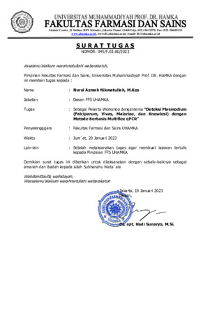 Nikmatullah, Nurul Azmah Sertifikat Pelatihan Plasmodium, Real Time. Universitas Muhammadiyah Prof. DR. Hamka.