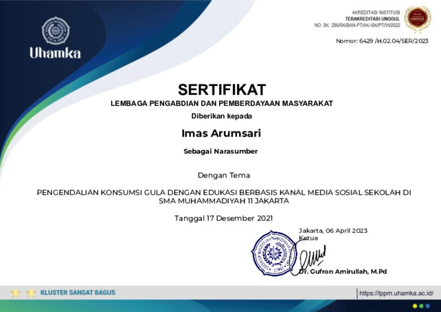 Arumsari, Imas Narasumber cemal cemil. UHAMKA. (Unpublished)