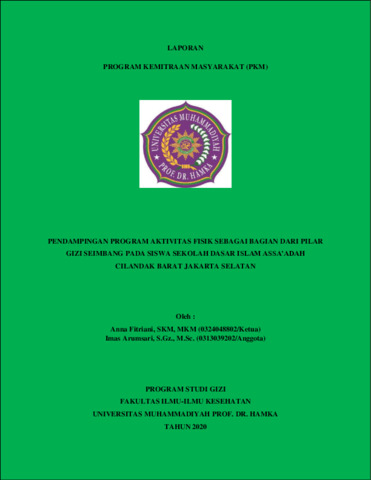 Fitriani, Anna dan Arumsari, Imas Laporan pengmas PENDAMPINGAN PROGRAM AKTIVITAS FISIK SEBAGAI BAGIAN DARI PILAR GIZI SEIMBANG PADA SISWA SEKOLAH DASAR ISLAM ASSA'ADAH CILANDAK BARAT JAKARTA SELATAN. UHAMKA.