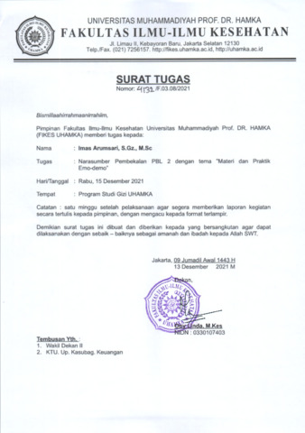 Arumsari, Imas Narasumber pembekalan PBL 2. Universitas Muhammadiyah Prof. Dr. Hamka. (Unpublished)