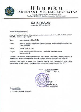 Arumsari, Imas Surat Tugas Pembicara UNU KALTIM. Universitas Muhammadiyah Prof. Dr. Hamka. (Unpublished)