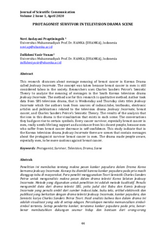 Novi Andayani Praptiningsih, NAP dan Zulfahmi, Zulfahmi (2020) Protagonist Survivor In Television Drama Scene. Protagonist Survivor In Television Drama Scene, 2 (1). pp. 44-54.
