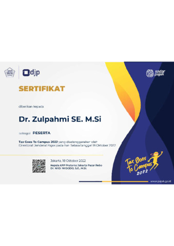 Zulpahmi, Zulpahmi Sertifikat Peserta Tax Goes to campus. FEB UHAMKA. (Unpublished)