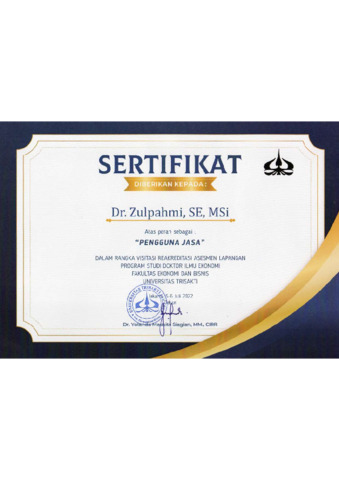 Zulpahmi, Zulpahmi Sertifikat Visitasi Reakreditasi. FEB UHAMKA. (Unpublished)