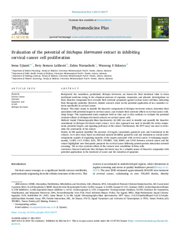 Ujianti, Irena dan lakshmi, bety semara dan Nurusshofa, Zahra dan sukarya, wawang s (2024) Evaluation of the potential of Stichopus Herrmanni extract in inhibiting cervical cancer cell proliferation. Phytomedicine Plus, 4 (100557). ISSN 2667-0313