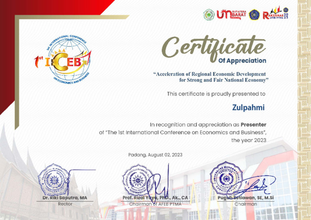 Zulpahmi, Zulpahmi Sertifikat Presenter The 1st International Conference on Economics and Business. FEB UHAMKA. (Unpublished)