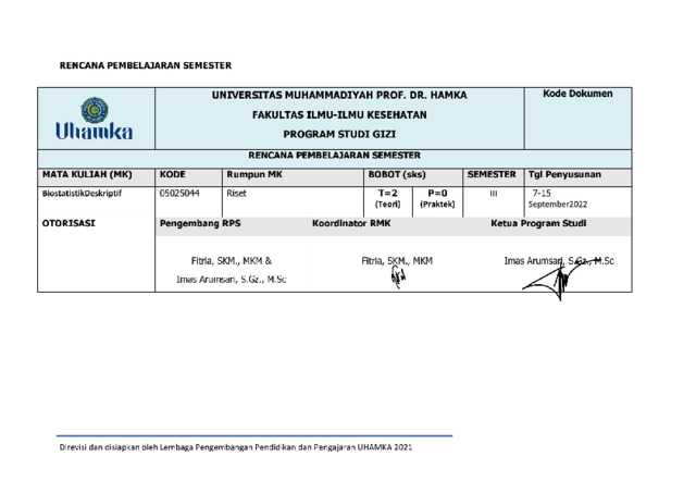 Arumsari, Imas dan fitria, fitria RPS Biostatistik Deskriptif. Universitas Muhammadiyah Prof. Dr. Hamka. (Unpublished)