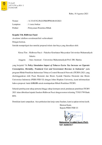 Arumsari, Imas Penerima Hibah ITCRN 2021. Universitas Muhammadiyah Prof. Dr. Hamka. (Unpublished)