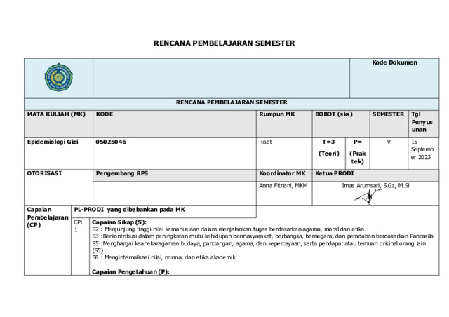 Arumsari, Imas dan Fitriani, Anna RPS Epidemiologi. Universitas Muhammadiyah Prof. Dr. Hamka. (Unpublished)