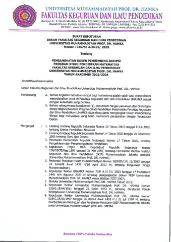 Jusra, Hella SK Pembimbing Skripsi Mtk. UHAMKA. (Unpublished)