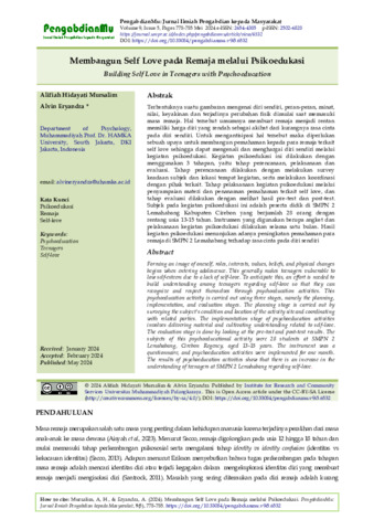 Mursalim, Alifiah Hidayati dan Eryandra, Alvin (2024) Membangun Self Love pada Remaja melalui Psikoedukasi. PengabdianMu: Jurnal Ilmiah Pengabdian kepada Masyarakat, 9 (5). pp. 778-785. ISSN 2654-4385