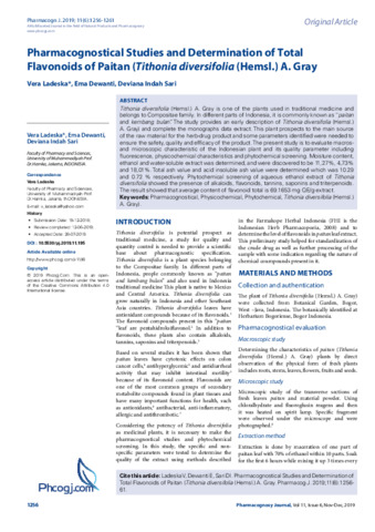 Vera Ladeska, Vera PJ2. Pharmacognostical Studies and Determinan Of Total Flavonoid of Paitan (Thitonia diversifolia (Hemsl.)A.Gray).