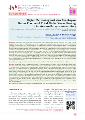 Vera Ladeska, Vera JFSK1. Kajian Farmakognosi dan Penetapan Kadar Flavonoid Total Herba Nanas Kerang (Tradescantia spathacea Sw.).