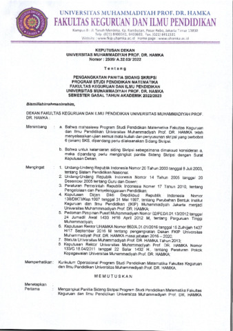 2022 - 2023 - SK PENGUJI SKRIPSI GASAL - PEND MATEMATIKA.pdf - Other Download (1MB) | Preview |