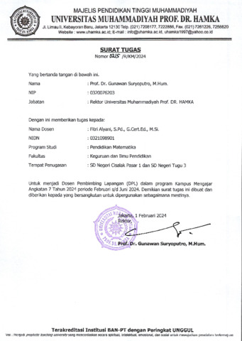 Alyani, Fitri Surat Tugas menjadi DPL KM 7 tahun 2024. UHAMKA. (Unpublished)