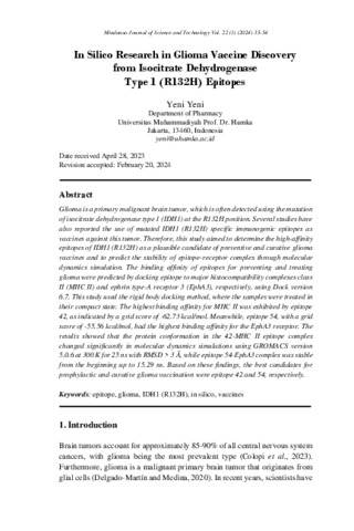 Yeni, Yeni (2024) In Silico Research in Glioma Vaccine Discovery from Isocitrate Dehydrogenase Type 1 (R132H) Epitopes. Mindanao Journal of Science and Technology.