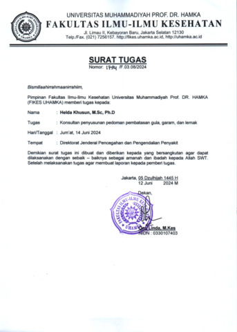 Khusun, Helda Surat Tugas Konsultan Penyusunan Pedoman GGL. Program Studi Gizi, Universitas Muhammadiyah Prof. Dr. Hamka. (Submitted)