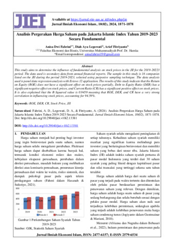 arief fitriyanto, arief fitriyanto Analisis Pergerakan Harga Saham pada Jakarta Islamic Index Tahun 2019-2023 Secara Fundamental. Jurnal Ilmiah Ekonomi Islam, 10 (2). ISSN 2579-6534