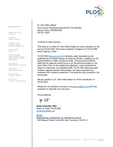 Akbari, Deni Sertifikat Reviewer PLOSONE. PLOSONE.