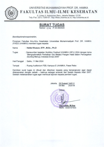 Khusun, Helda Narasumber NFU 2024. Program Studi Gizi, Universitas Muhammadiyah Prof. Dr. Hamka. (Submitted)