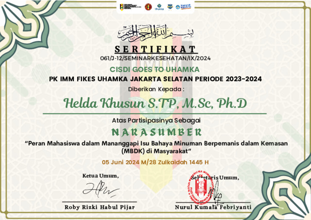 Khusun, Helda Sertifikat CISDI. Program Studi Gizi, Universitas Muhammadiyah Prof. Dr. Hamka. (Submitted)
